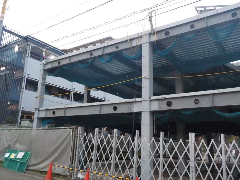 コチラのお写真の白い防音・防埃シートに囲まれた現場の左隣りに建っているのが…