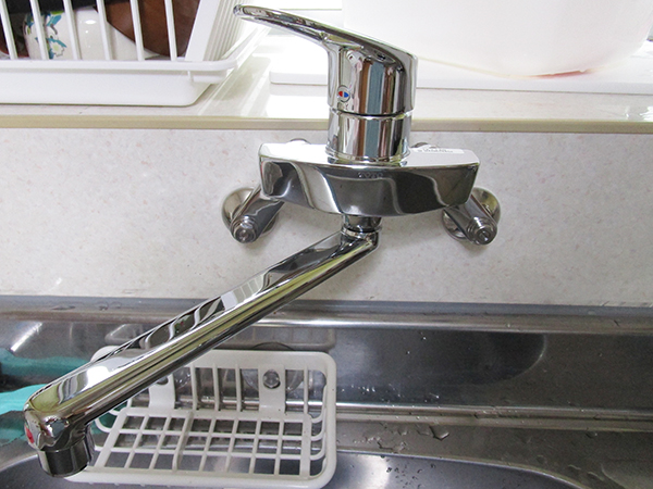 元々、壁に取り付けられていた水栓金具(蛇口)は、カタチはそのまま壁付けのまま