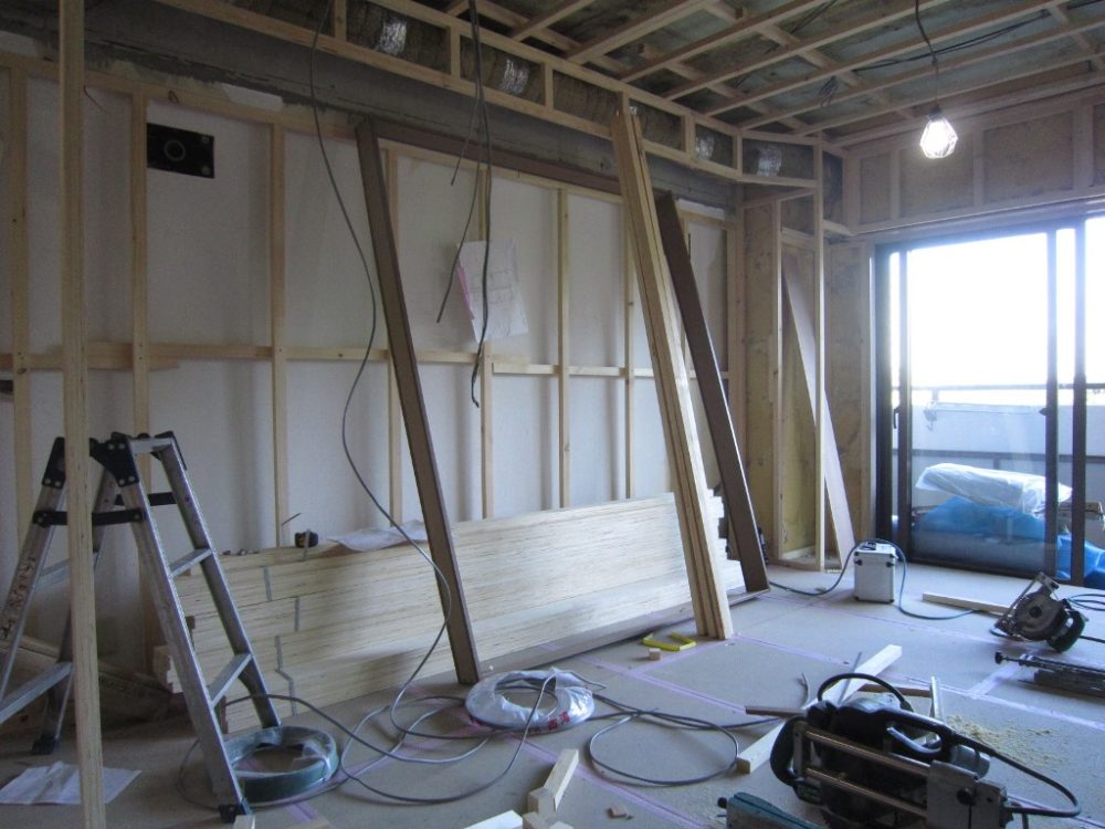 ココからは一般的な内装リフォーム同様に、防火用の石膏ボードを施工して壁紙(クロス)