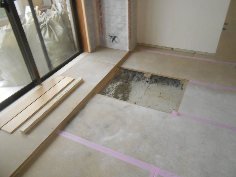 1階の床全面に施された温水を循環させる塩ビパイプ!!