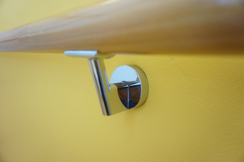 壁から伸びる腕の様な形状で丸い棒を支えている金物ですが、コチラの写真は