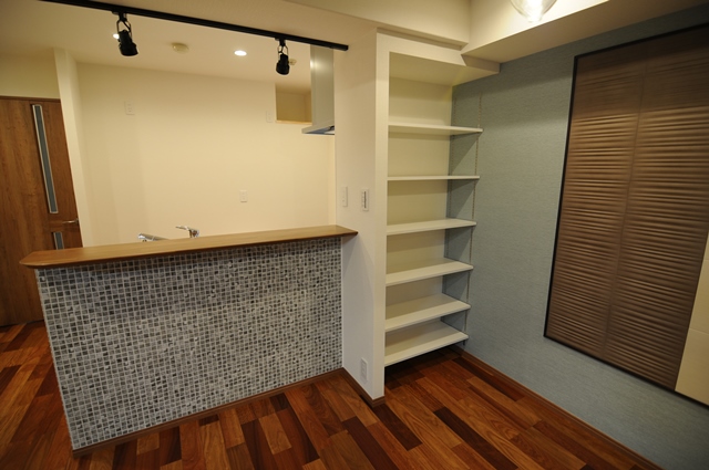 今度は奥様のお気に入りの「モザイクタイル」を、リフォームで壁を撤去して