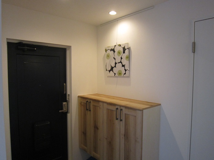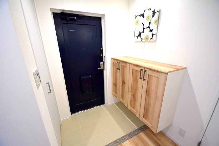 このエコカラットは、素材の持つ多孔質層により玄関にはより嬉しい、調湿機能と