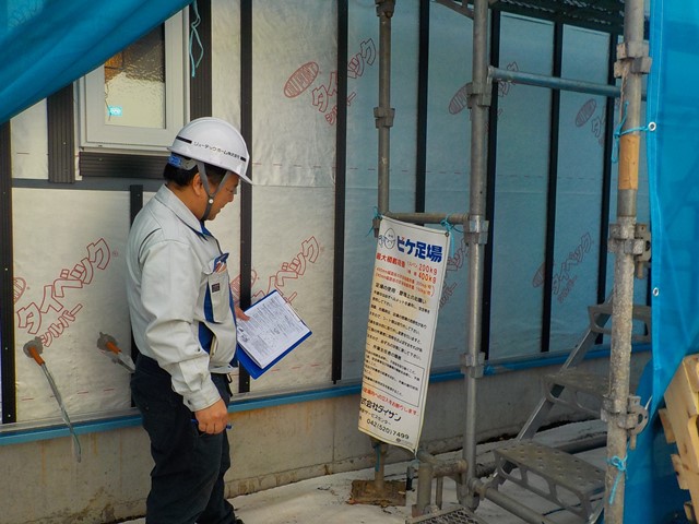 ジューテックホームの建築工事に携わって頂いている工事業者様にも「足場」