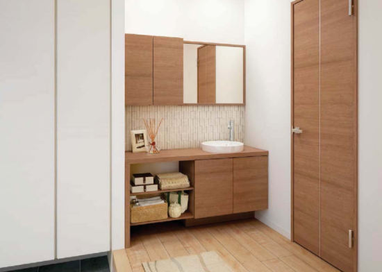 こちら、今回のジューテックホームの施工例でも洗面化粧台のご協力を頂いた
