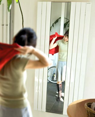 こちらの大きな鏡とタテに並んだLED照明は、デザインだけの目的