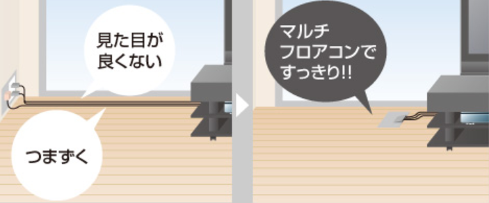 分岐させて床下に電線を配線工事する作業が必要で、電気工事リフォームとしては