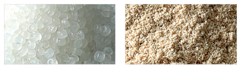 こちらは最近のウッドデッキ材の主流となりうる天然木の木粉と樹脂を混合し