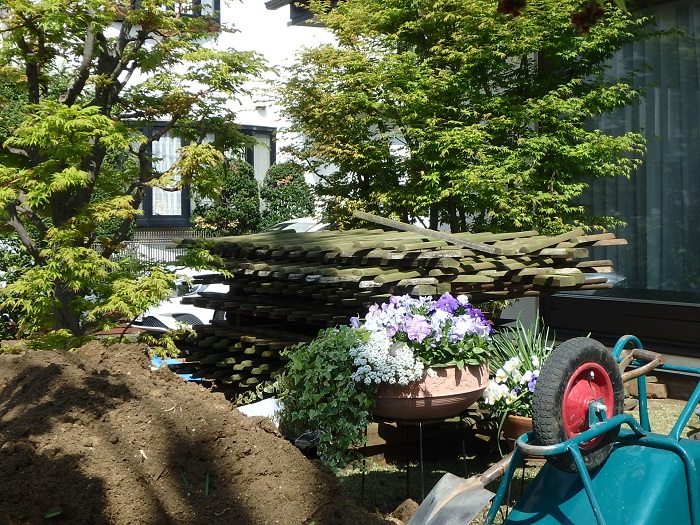 その輸入ブリックの、”ちょっと手前”に新たに設置するフェンスの基礎工事