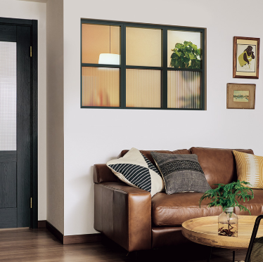 設定されたカスミガラスや人気のチェッカーガラスを使えば、適度なプライバシー