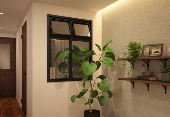 部屋を仕切る壁ですが、室内窓をつけることで「通風」や「採光」を取り込め