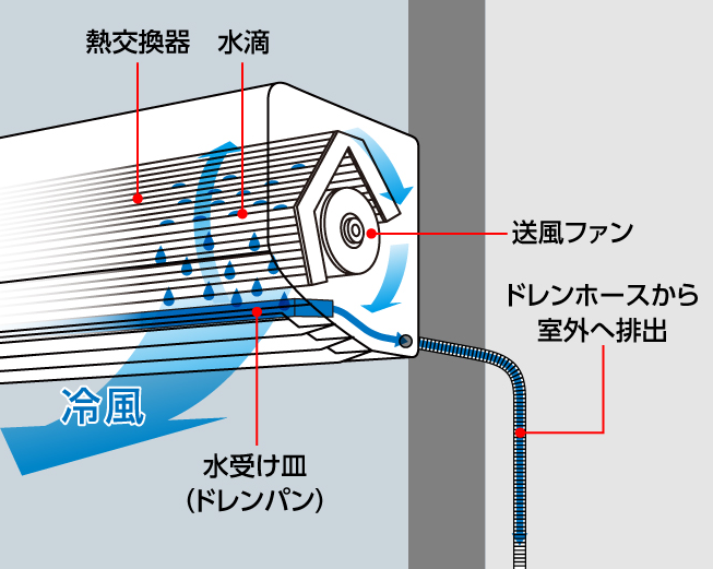 これが、「エアコンの冷房とエアコンから出るお水の仕組み」