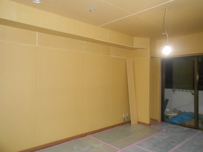 最新の高性能な断熱材を充填工事、再度、新しい「石膏ボード」を