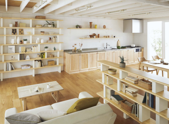 のお部屋まで、収納材を構成する棚板がお部屋全体の雰囲気をガラッと