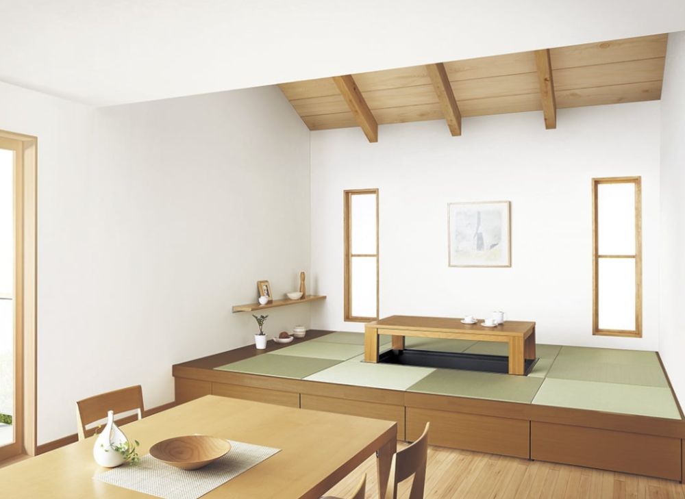 広いリビングルームの一角などに、和室の様に表面に畳が施された