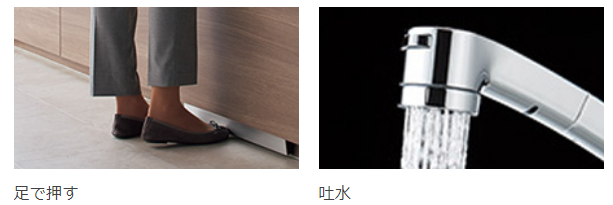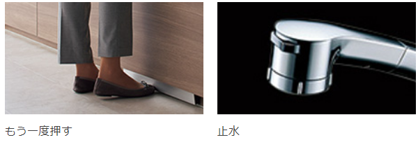 手が泡泡であったり、両手が塞がっていても出し止めは簡単操作!!