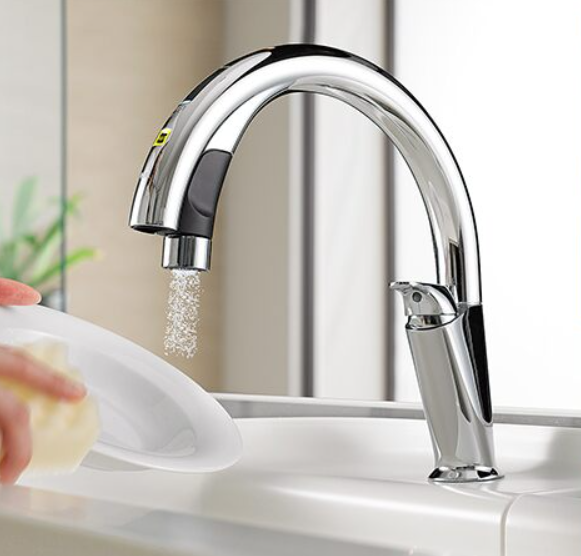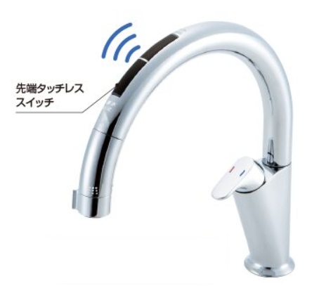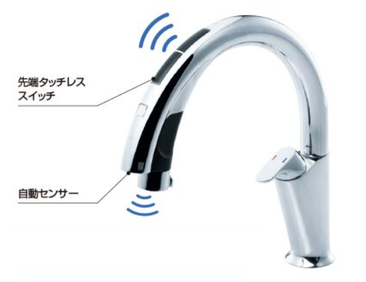 水栓金具の吐先の自動センサーで水の出し止めする機能が追加されている