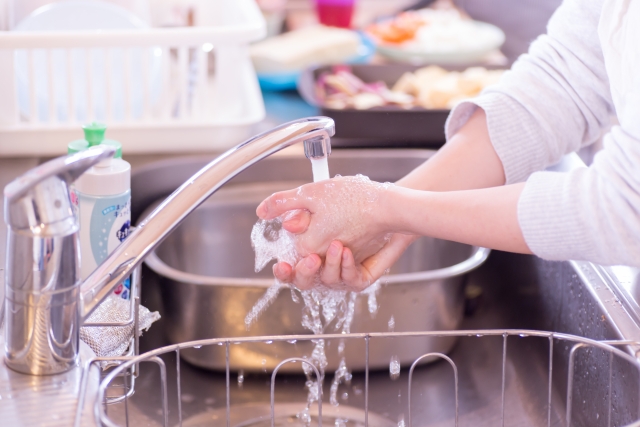 止水した時にまた手に泡が付着し、その泡がせっかく綺麗にした
