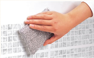今までタイルの目地のカビや水アカと落とす為にガシガシと磨いて