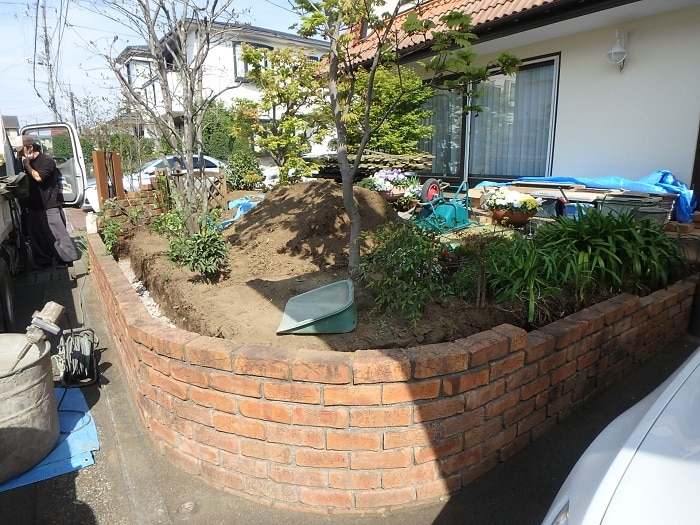ブリック(塀)の内側が深く掘られている施工中の写真!!