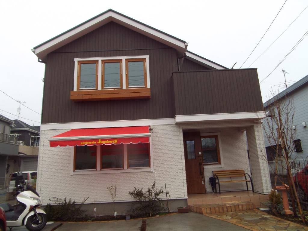 落ち着いた外観の店舗に「赤く映えるオーニング」が目を惹きます!!