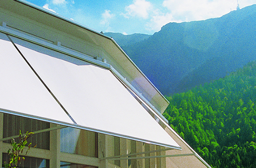 外部に設置するオーニングや外部シェードは、その「発熱体」となる