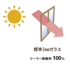 ・カーテンなどの様に「室内側」で直射日光を遮断しても、「窓ガラス」や「サッシ(窓枠)」