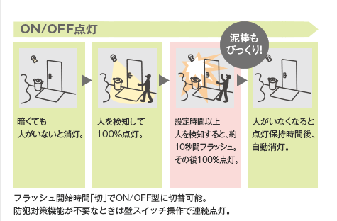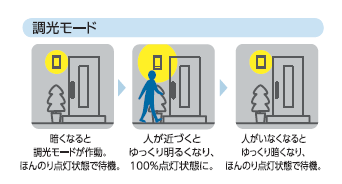 通常は”ほんのり点灯(20%)” 人が近づくと完全点灯(100%)!!
