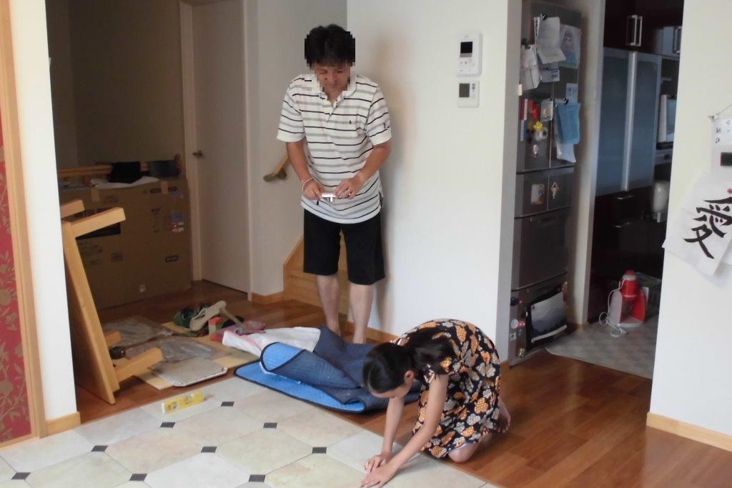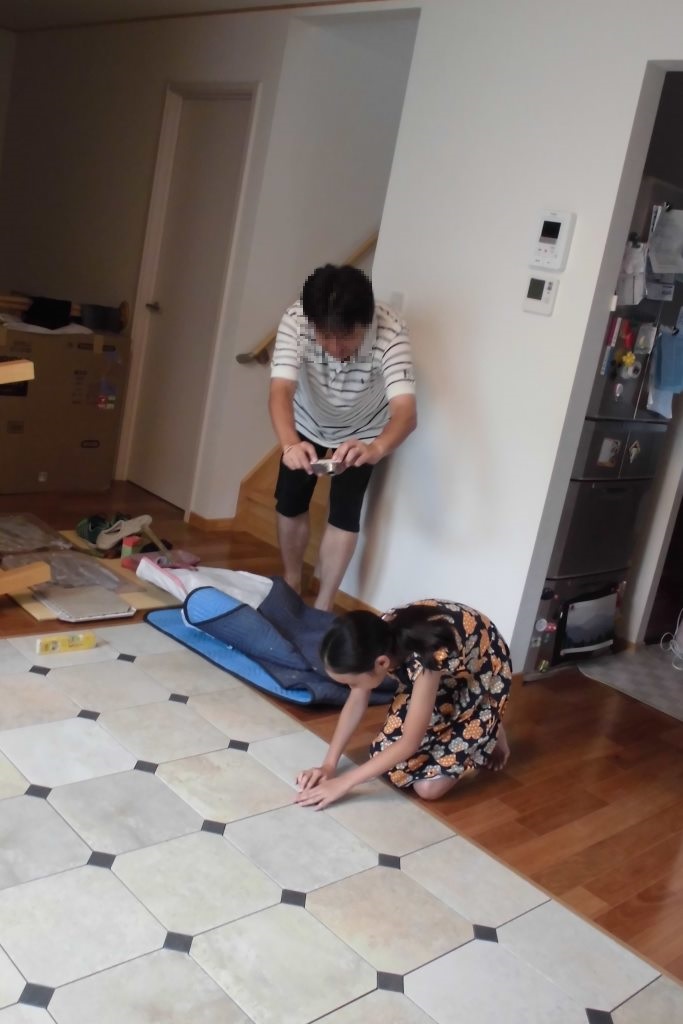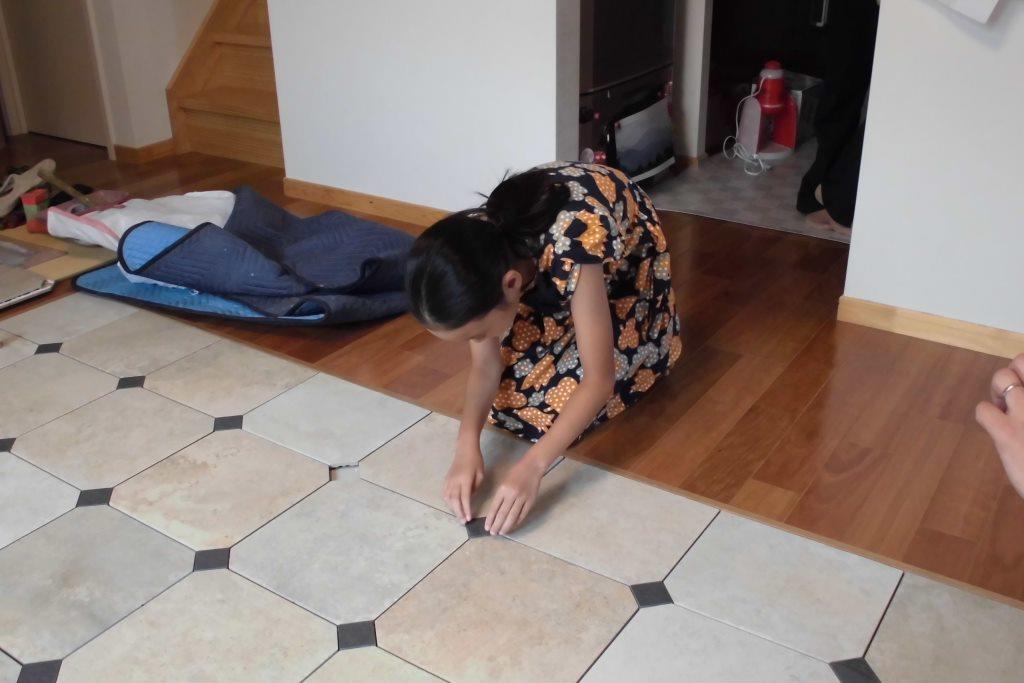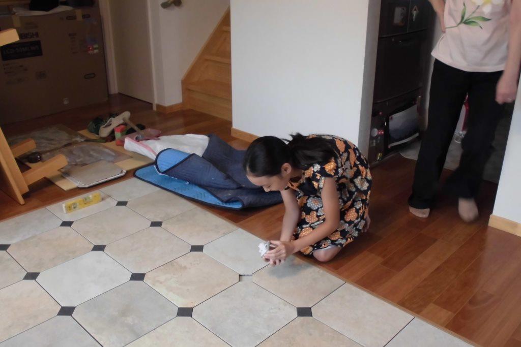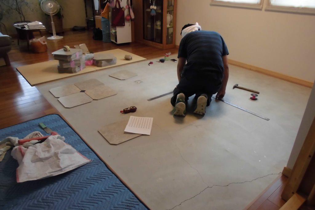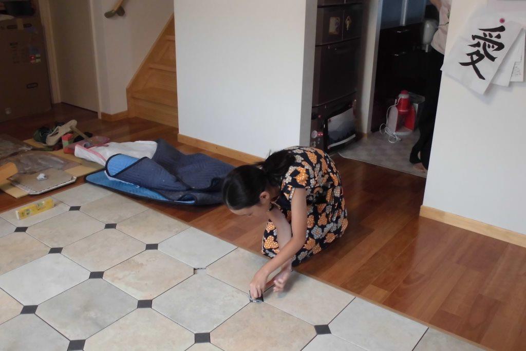 かわいい娘さんも一緒に!! 床タイル貼りリフォーム編!!