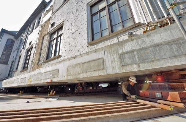 その作業は「曳家」の技術で建物を上方向への移動で対応します。