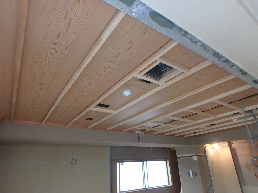 今回のマンションリフォームで、既存の天井から下げて新規の天井を