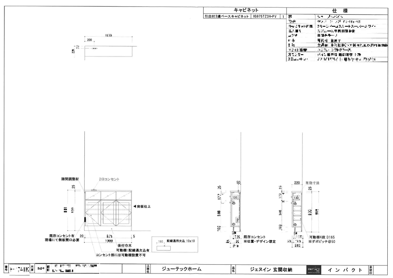・IMPACT社 ジェヌイン家具 「引出し付ベースキャビネット」