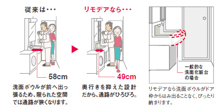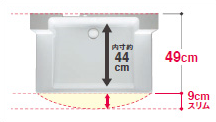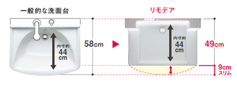 なんと従来の一般的な洗面ボウルより「9cm」もでっぱりが小さいんですね!!