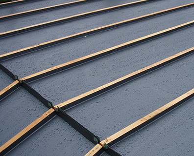 縦平葺きでは、金属板同士の締結部をロック(お互いに引っかける様に)
