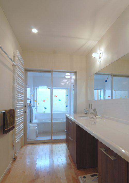 何気ないタオルウォーマー一つで、おしゃれな洗面室に