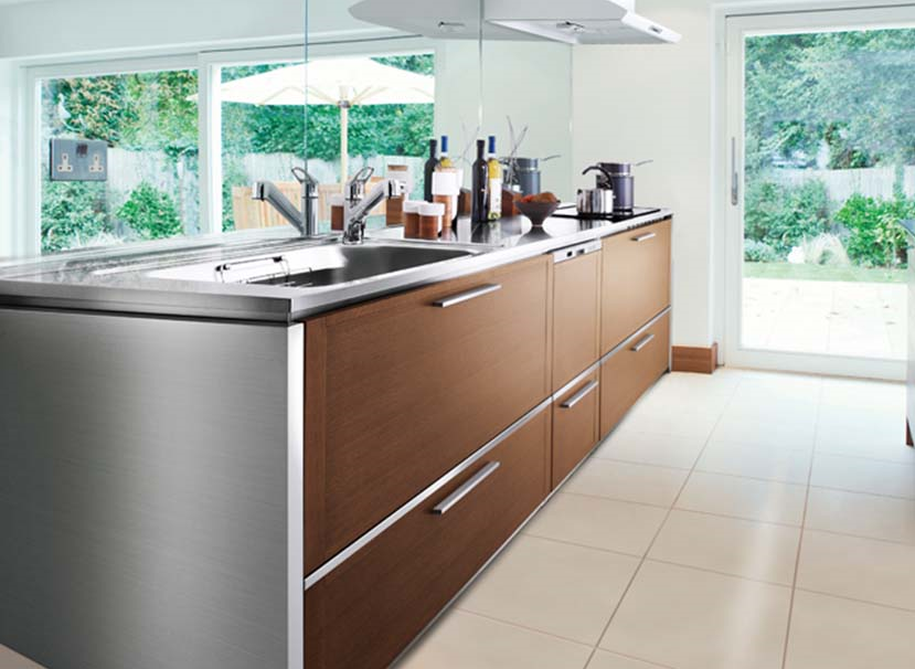 このシステムキッチンの大きな特長は、ステンレス構造による