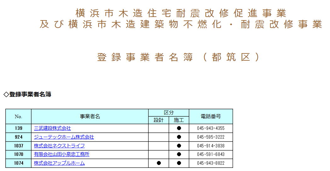 是非、耐震診断は[横浜市建築局認定の耐震改修登録事業社]