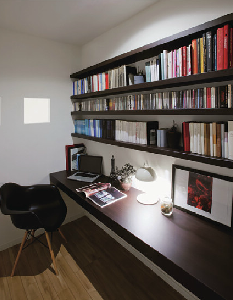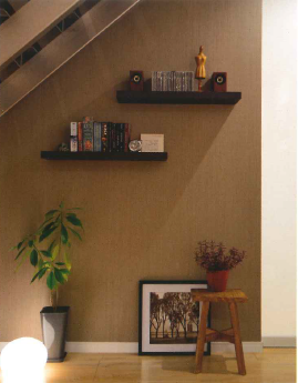 壁面に”ブックシェルフ”として取り付けられた棚には