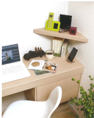 A: 室内インテリアに合わせた棚材の面材(色柄)のステキさ…