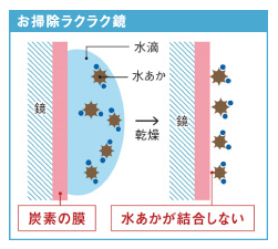 鏡表面に”親水加工”を施すことによって、水滴が残りにくく