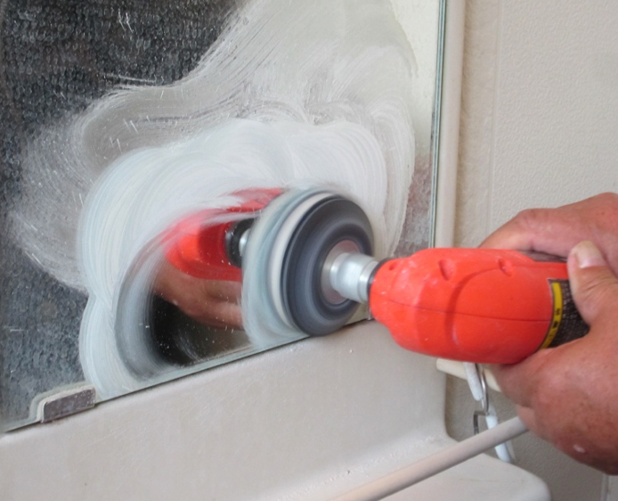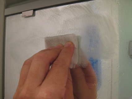 ホームセンターなどで、”お風呂の鏡の水垢落とし”などが市販されて