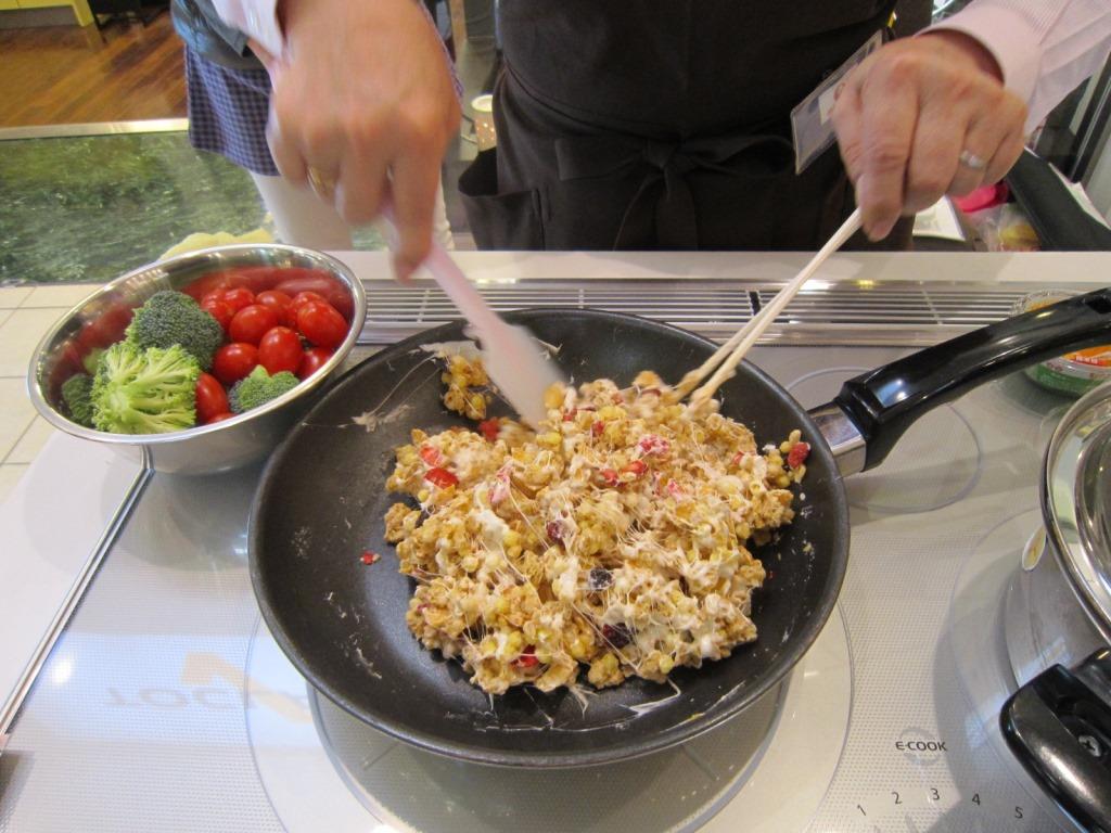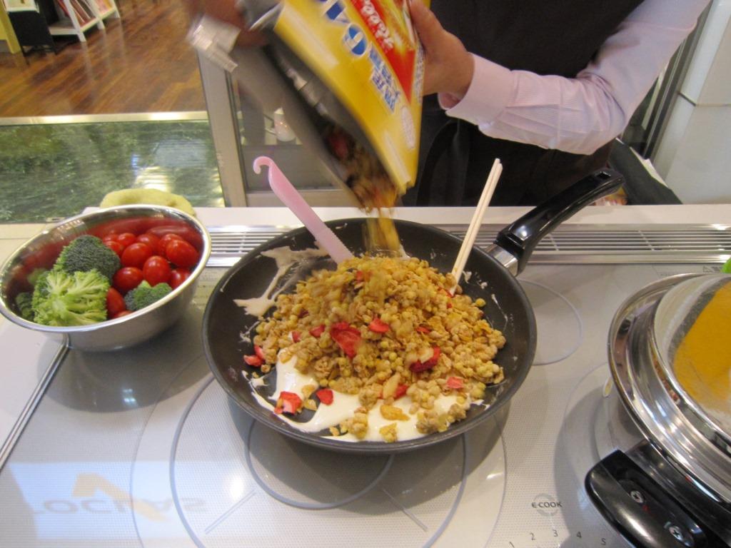 ②マシュマロが完全に溶けたら、<フルーツグラノラ>を加え