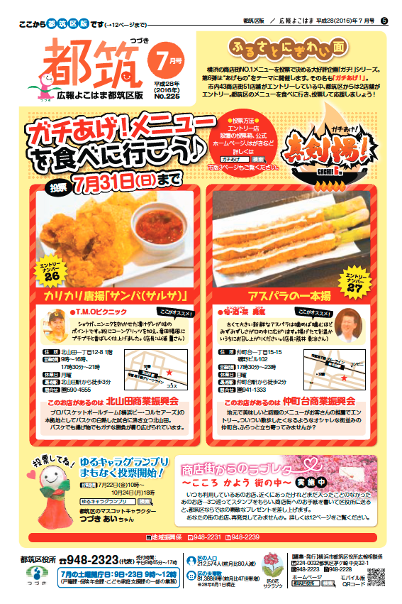 今月の「広報よこはま 都筑区版」の特集は