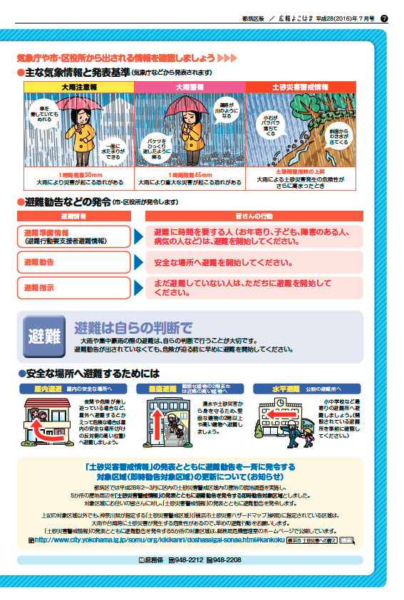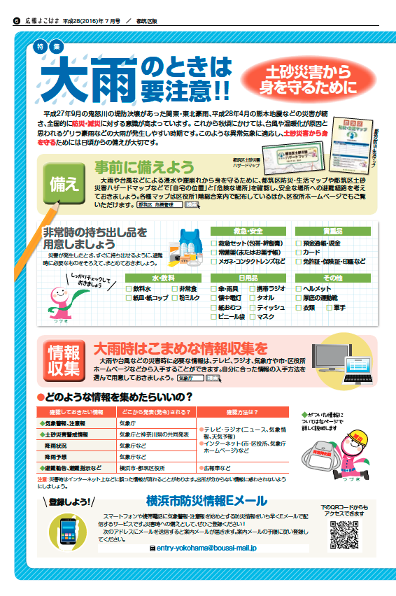 今月の「広報よこはま 都筑区版」では、そんな大雨に対して