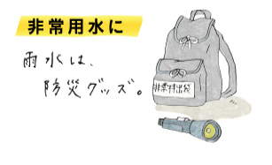 縦樋から分岐させてある一定量まで雨水を貯めておくことができる