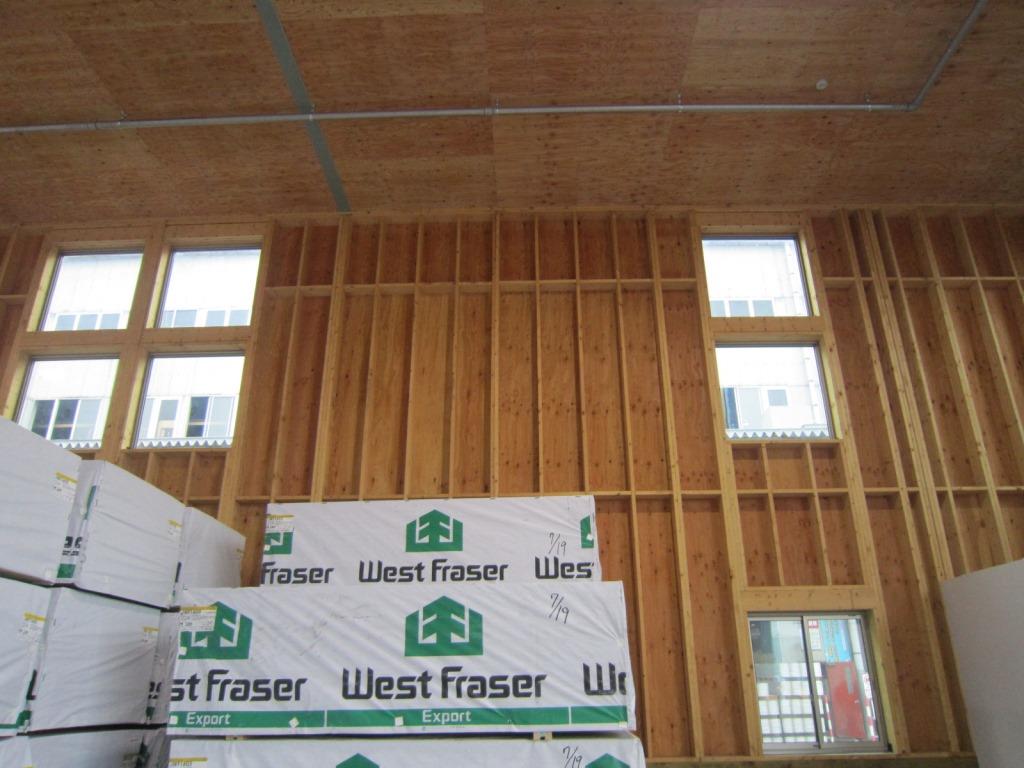 壁は見慣れた2×4工法。 使用されているSTUD(柱)は、2×8材でしたね!!