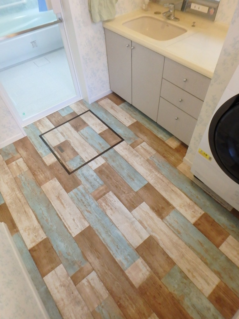 洗面脱衣室の壁紙と床(フローリング)を貼り換えたリフォーム!!
