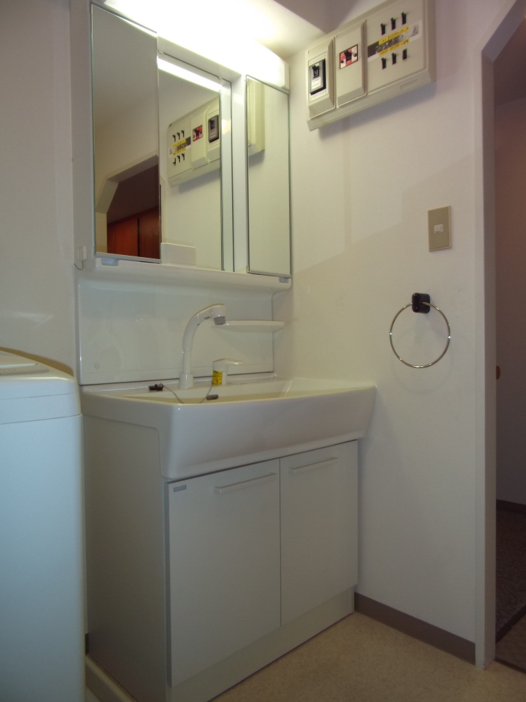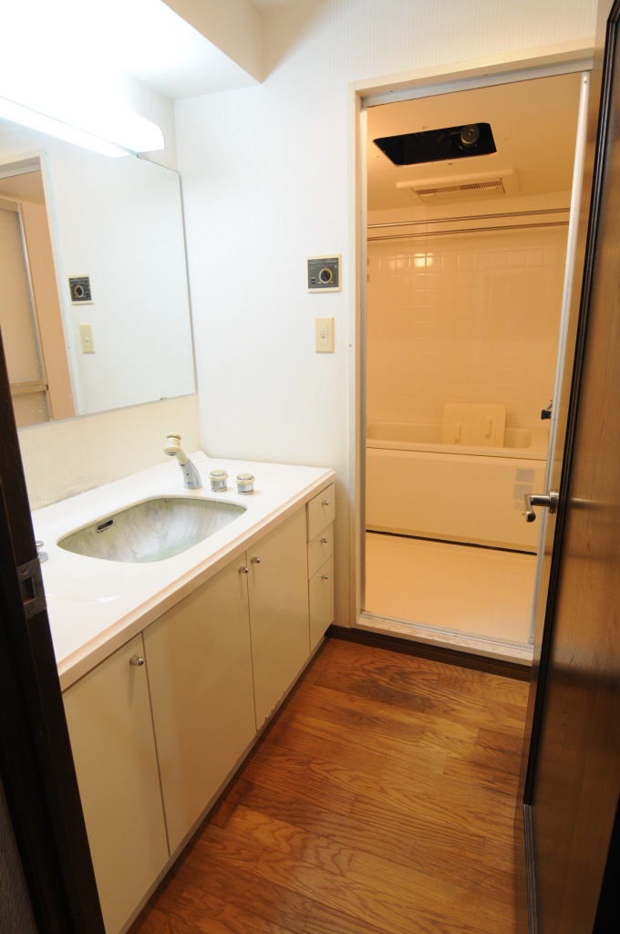一般的なおすまいよりは、ちょっと優雅な広々洗面脱衣室でしたが