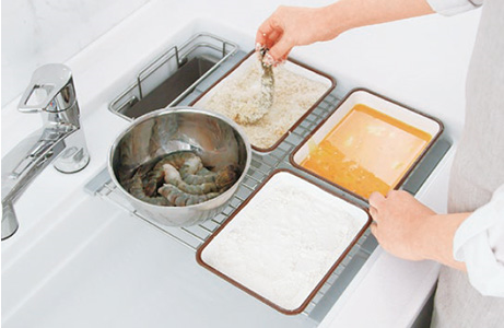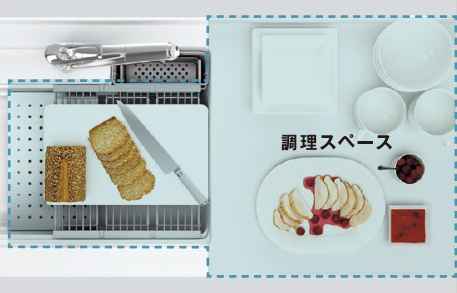 3段のスライド作業台の[1段目(最下段)]で、シンクの底に直接触れない様に