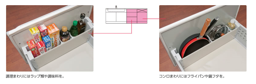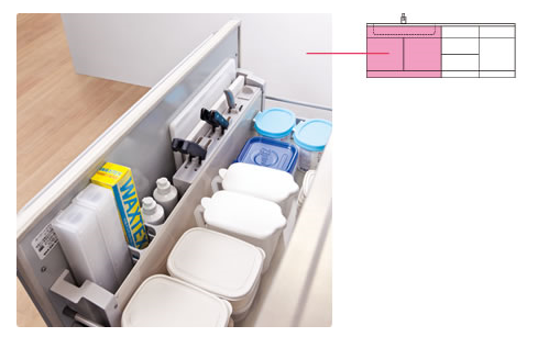シンク下の引出しの一番扉側に専用の収納ポケットがあるんです!!